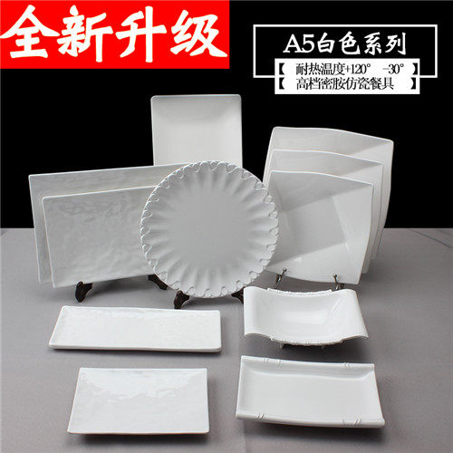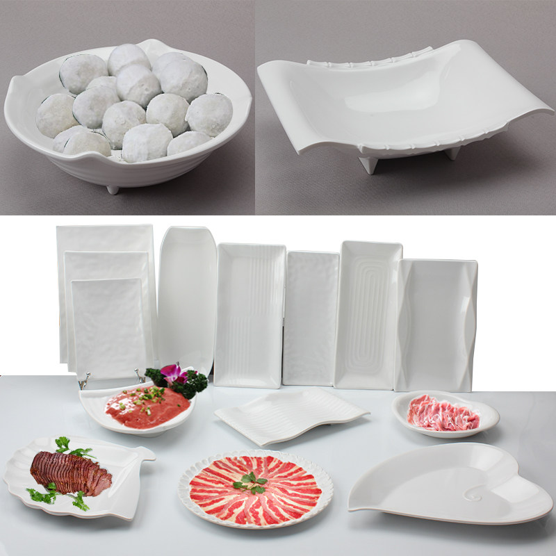 White Melamine Pan Hot Pot Dishes Commercial Square Pan Day Style Barbecue Shop Beef Plate Plastic Plate Imitation Porcelain Cutlery
