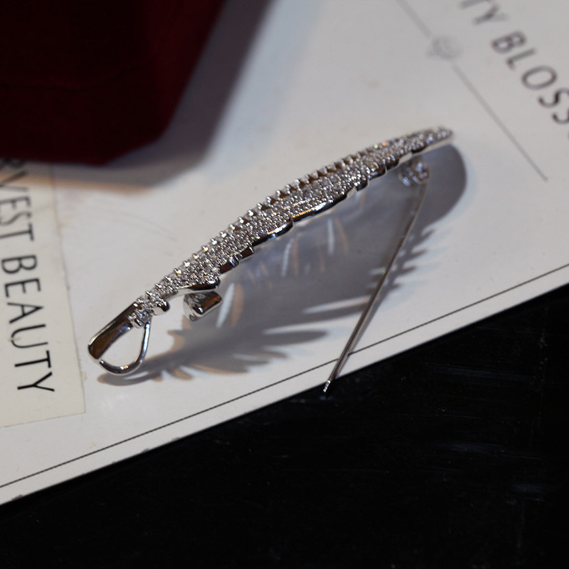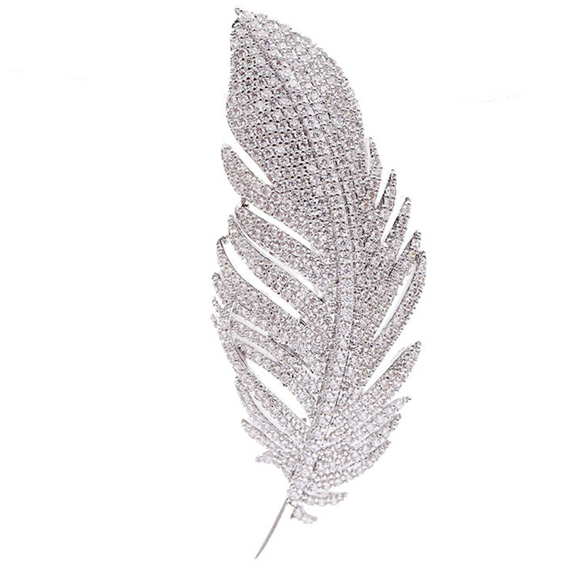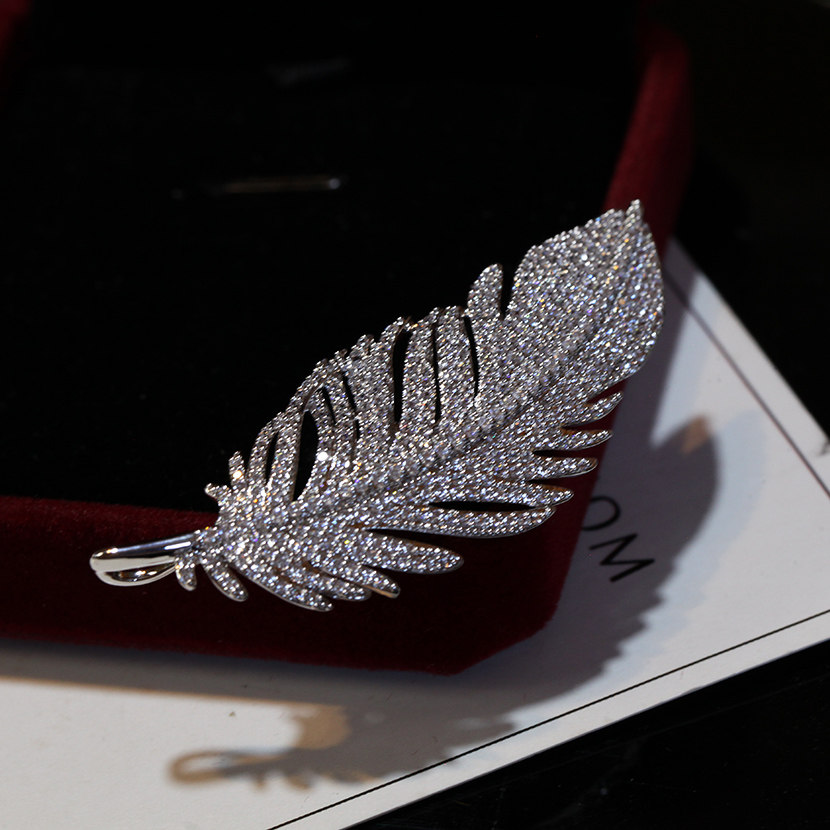 Zircon feather brooch ultra shiny delicate and slightly inlaid plethora of upscale 100 lap minimalist atmosphere sweater with a no-pin button
