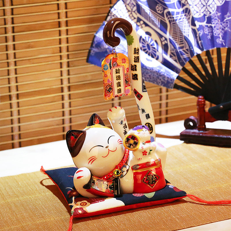 Ji Cat Hall lucky cat ornaments open ceramic long-tailed cat shop cashier Home living room money piggy bank