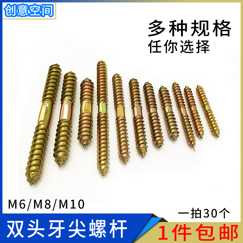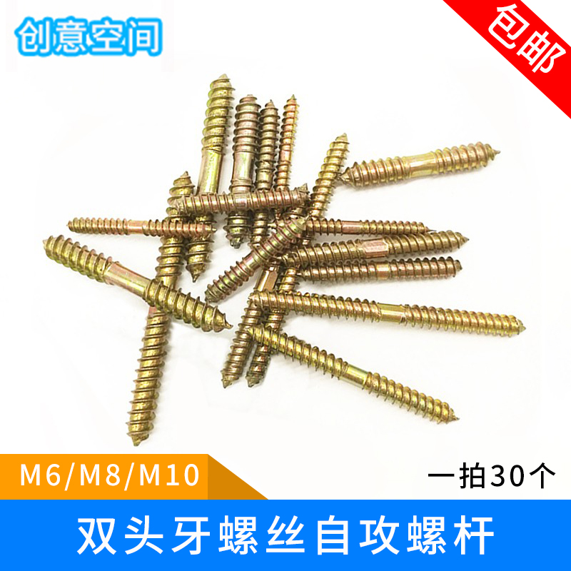 Double-head tooth double tip screw rod two teeth furniture stud assembled fastening Crutch Screw Self tapping tooth M6M8M10