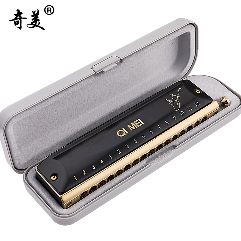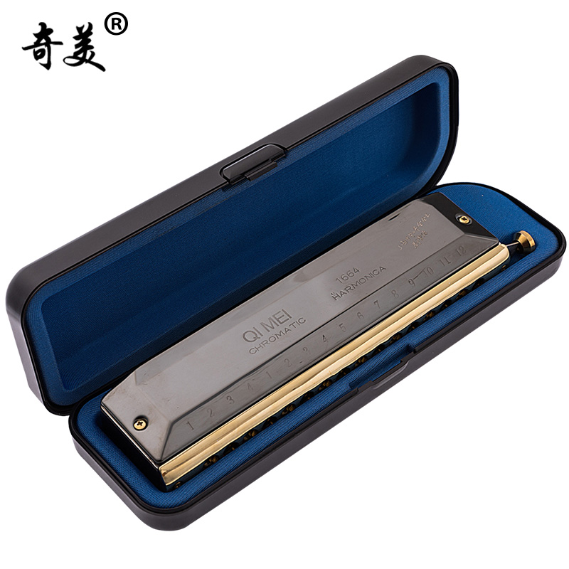 Chimei chromatic harmonica 16-hole adult professional performance grade 1248 beginner student black overlord 12-hole harmonica