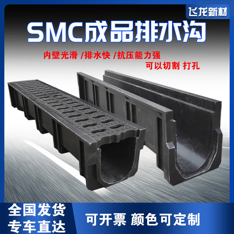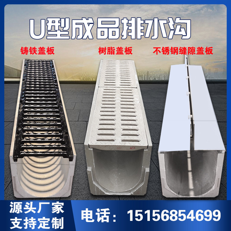 Composite finished resin concrete drainage ditch U-groove with cast iron high molecular linear stainless steel cover plate flying dragon
