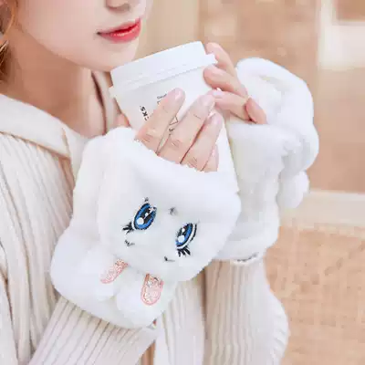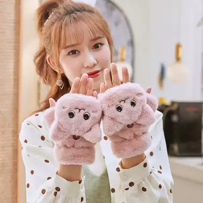 Gloves winter women plus velvet warm thickened cold-proof flip cat cute student Girl season winter cycling writing