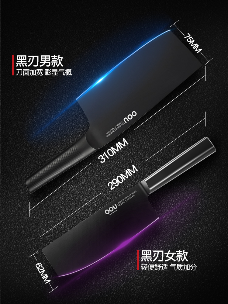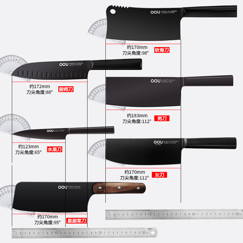 OOU Kitchen Knife Home Kitchen Black Knife German Stainless Steel Sharp Slice Main Kitchen Knife Chefs Lady Black Blades