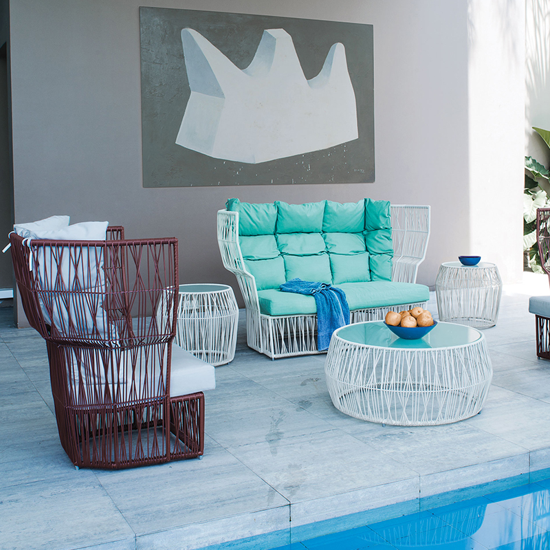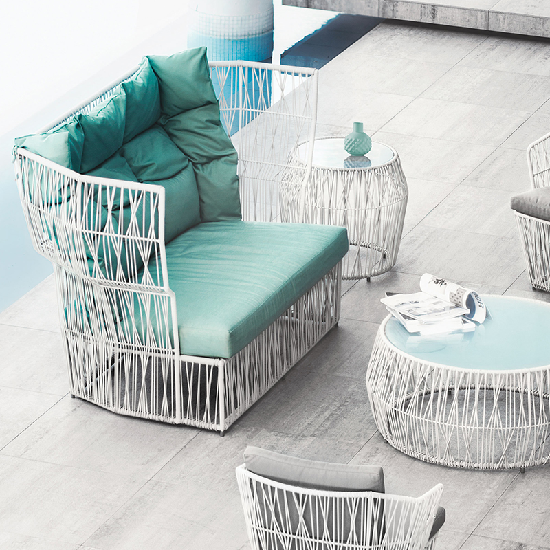 High back chair Two high back chairs 80cm coffee table 60cm small coffee table combination