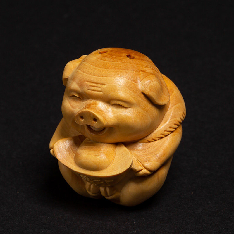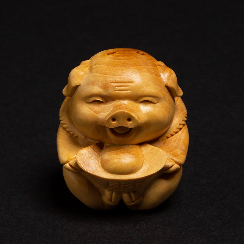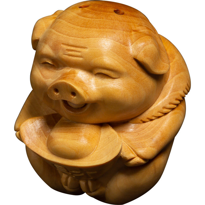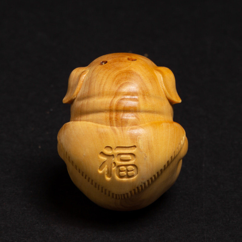 Boxwood living room creative text play handle craft gift decoration Car pendant Portable lucky pig lucky pig wood carving ornaments