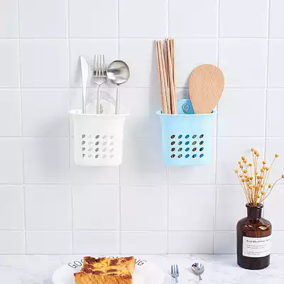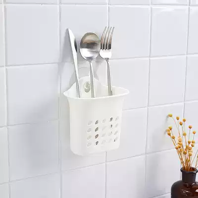 Suction cup tableware storage shelf Drain chopstick cage Wall-mounted corner small chopstick tube Sticky hook Spoon tube