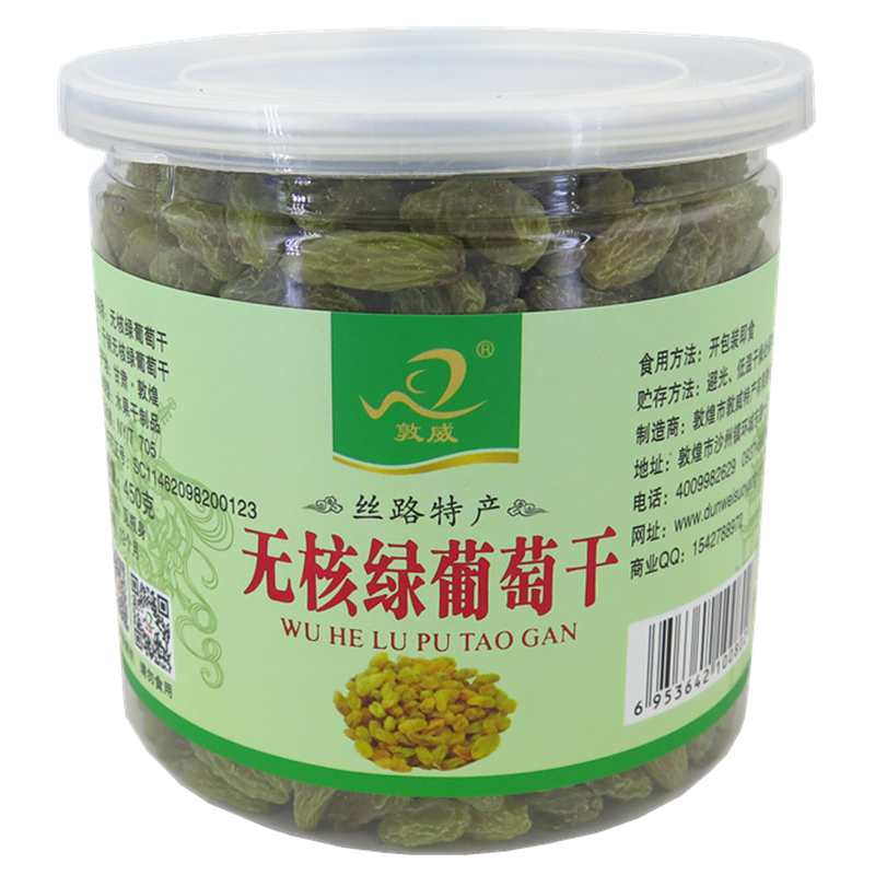 Dunhuang Specialty Dunwei Green Fragrant Concubine Seedless Green Raisin Dried Fruit 450g Canned Travel Snacks