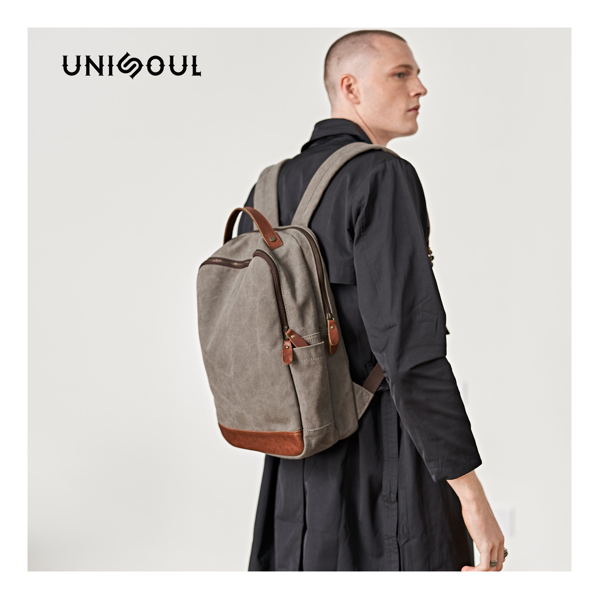 Double Shoulder Bag Men Casual Canvas Double Shoulder Bag Fashion Trend Youth High School Student School Bag Brief Travel Bag