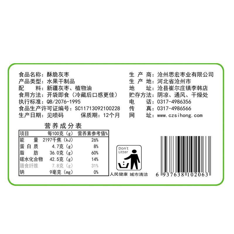 (Coupon full 99-50)Sihong seedless crispy gray dates 218g Xinjiang gray dates casual snack crunchy