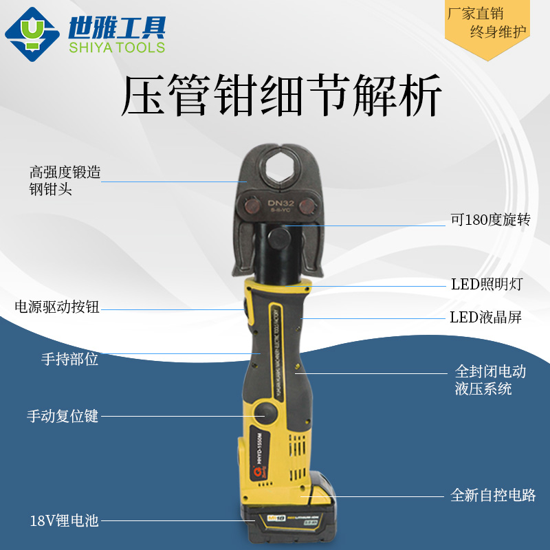 Portable charging pliers electric pressure tube clamp stainless steel water pipe press pliers Hydropower tools
