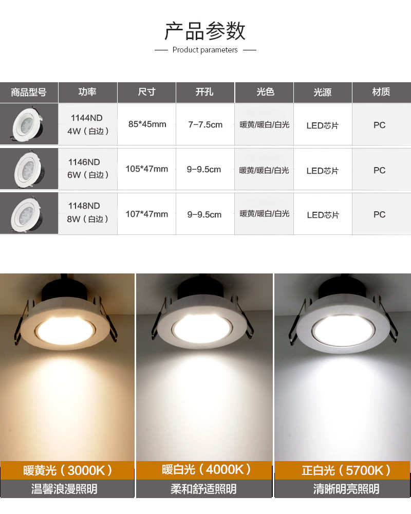 NVC lighting spotlight led embedded home ceiling lamp 4W6W hole lamp living room background wall bull's eye lamp 1144