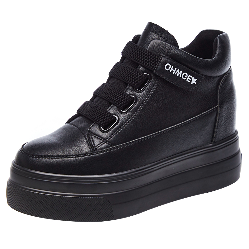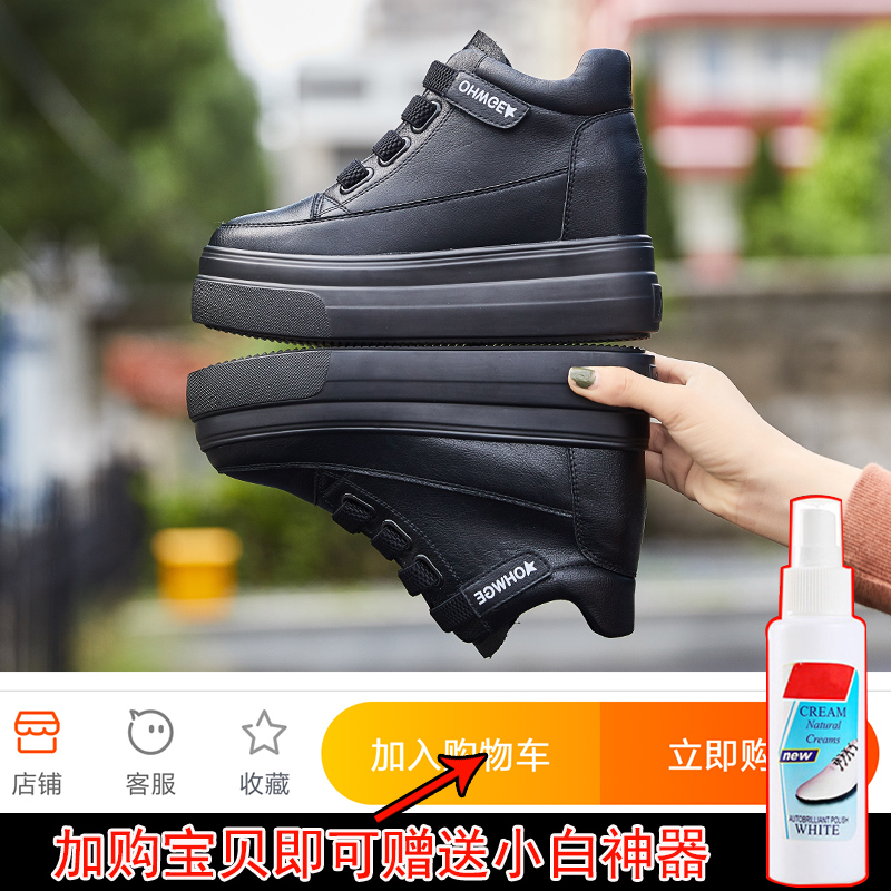 8cm inner heightening of women shoes 2021 new 100 lap shoes plus suede autumn winter casual black thick bottom muffin cotton shoes