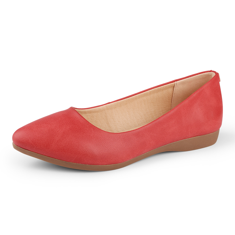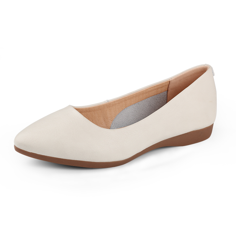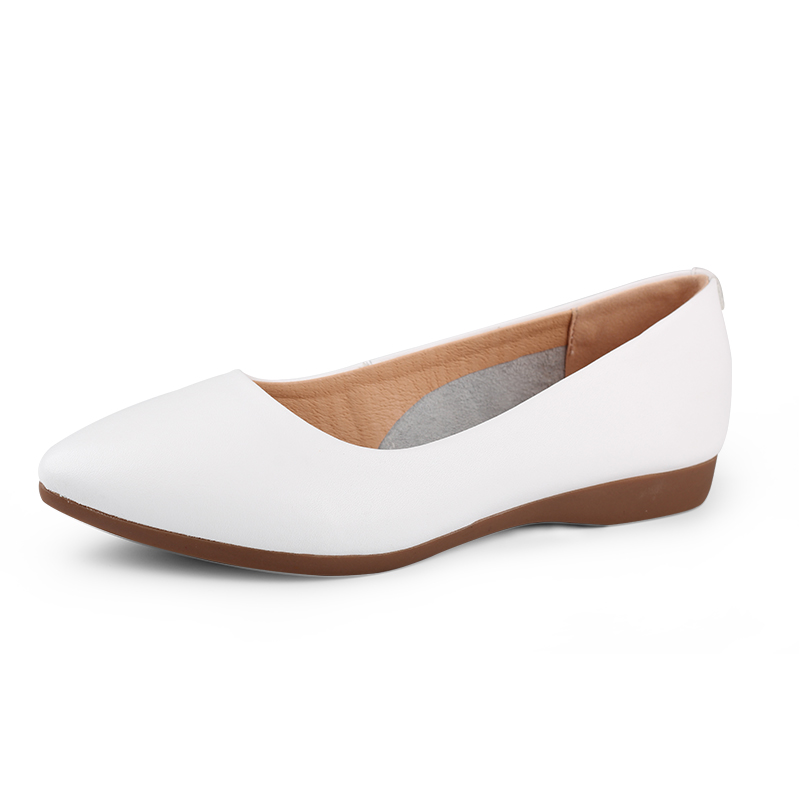 Leather flat pointed toe white beige pink red single shoes non-slip pointed toe work shoes women's soft-soled shoes