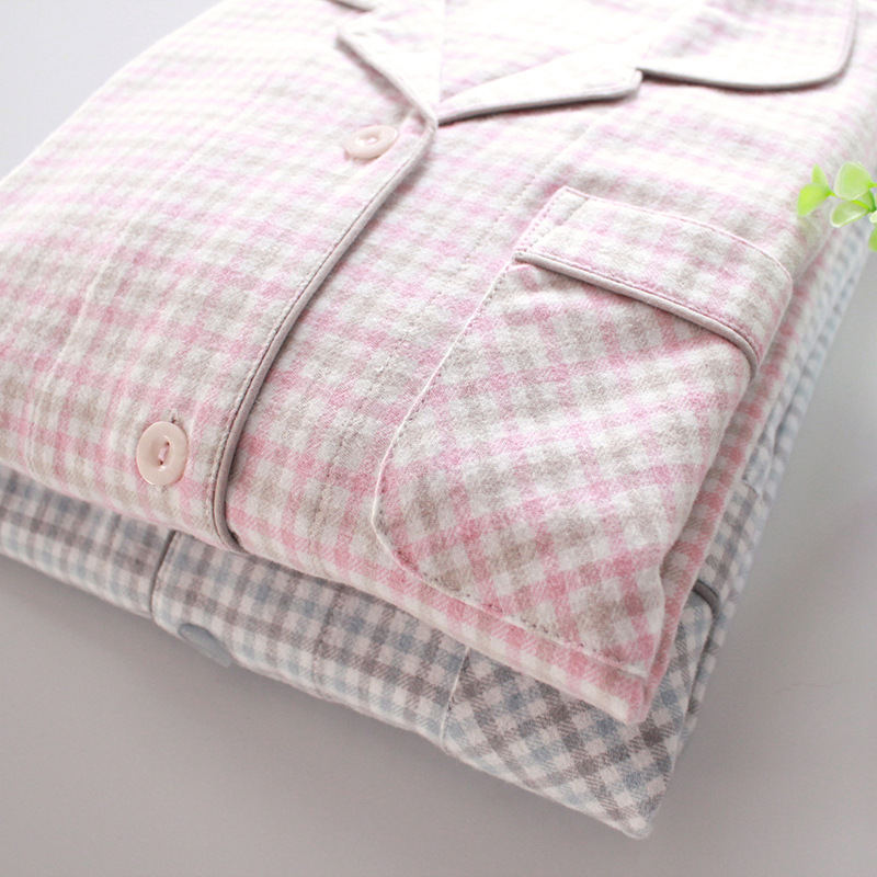 Foreign Trade Spring Autumn Winter Full Cotton Flannel Lady Long Sleeve Couple Sleeping Clothes Pure Cotton Casual Plaid Men's Home Suit Suit