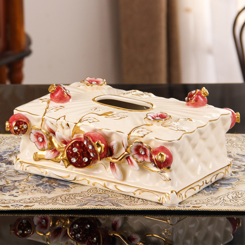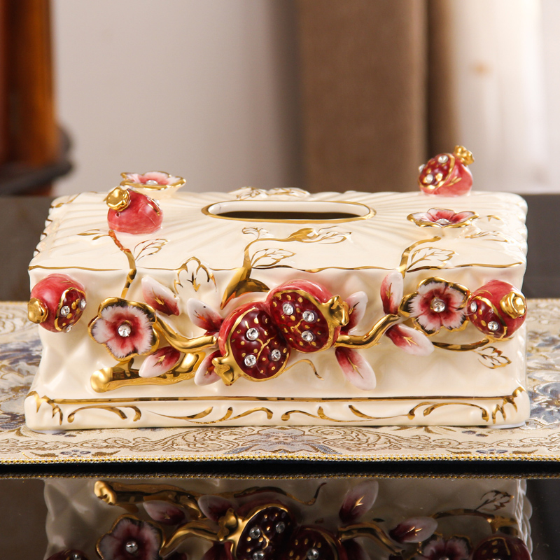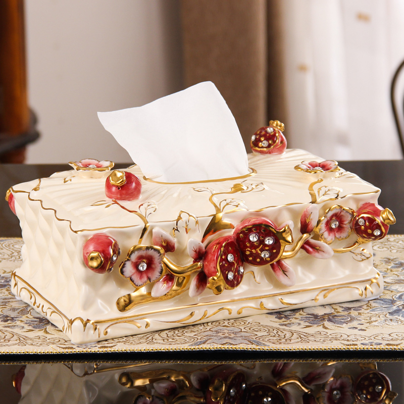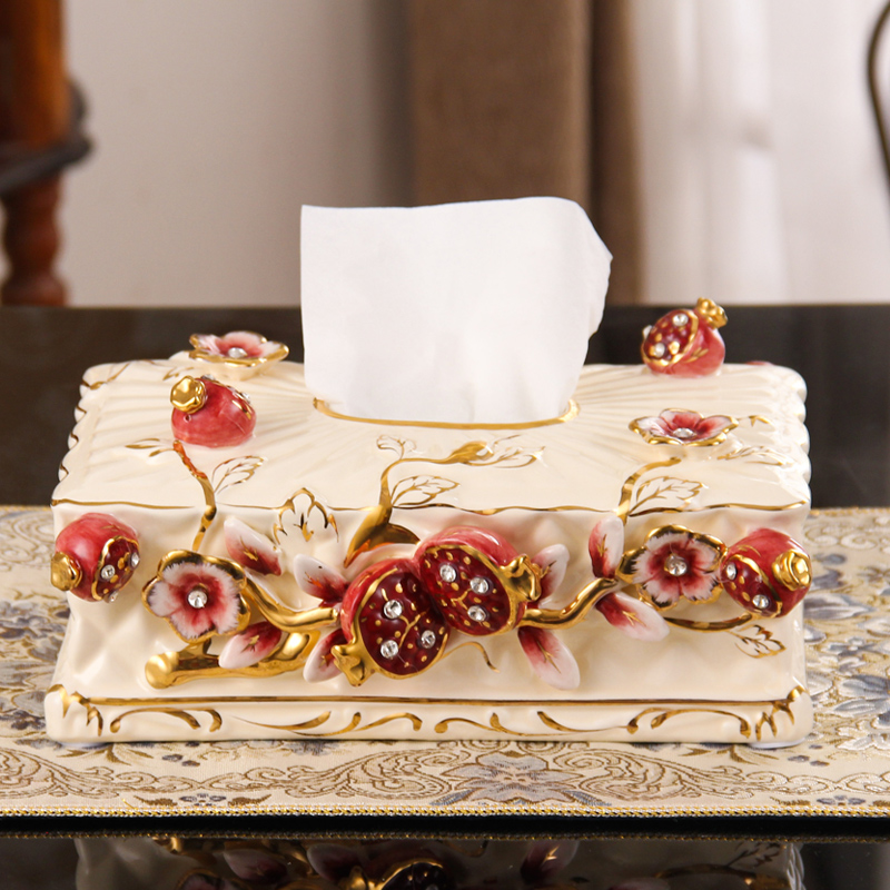 Real Accessories Eurostyle Ceramic Paper Towel Box Living Room Paper Towels Home Toilet Paper Box Palace Tea Table Decoration Swing Accessories Creative Gifts