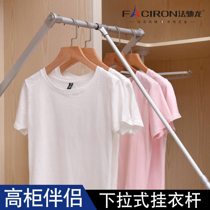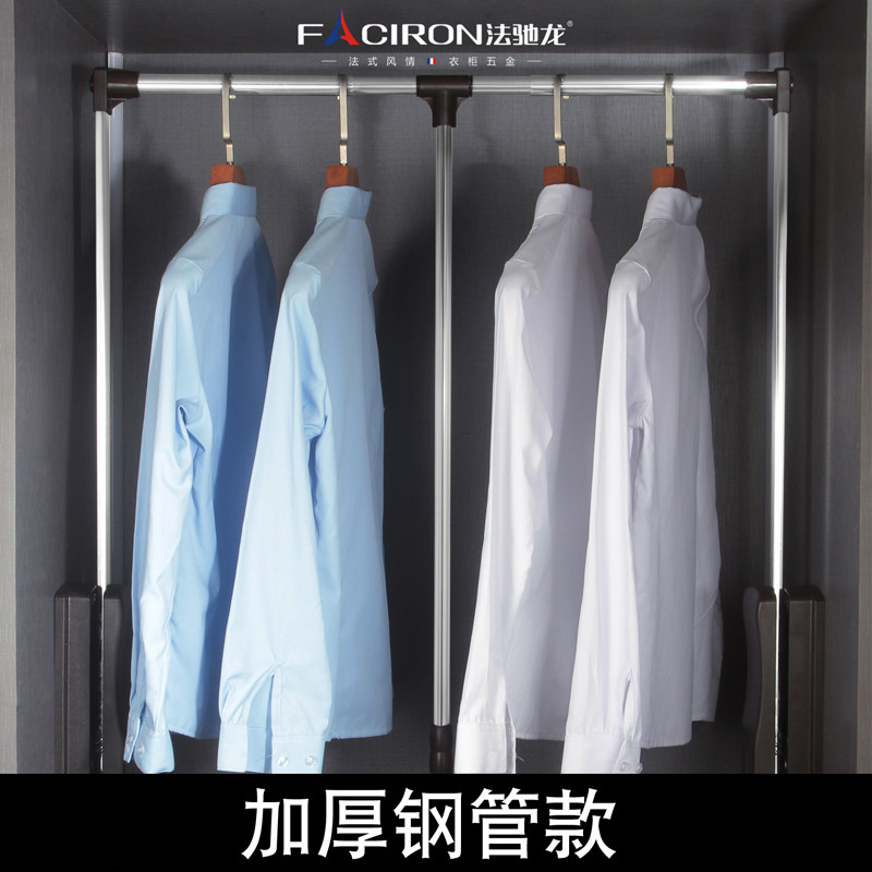 Wardrobe pull-down hanging rod Cloakroom automatic lifting hanging device Movable hanger buffer wardrobe clothing through rod
