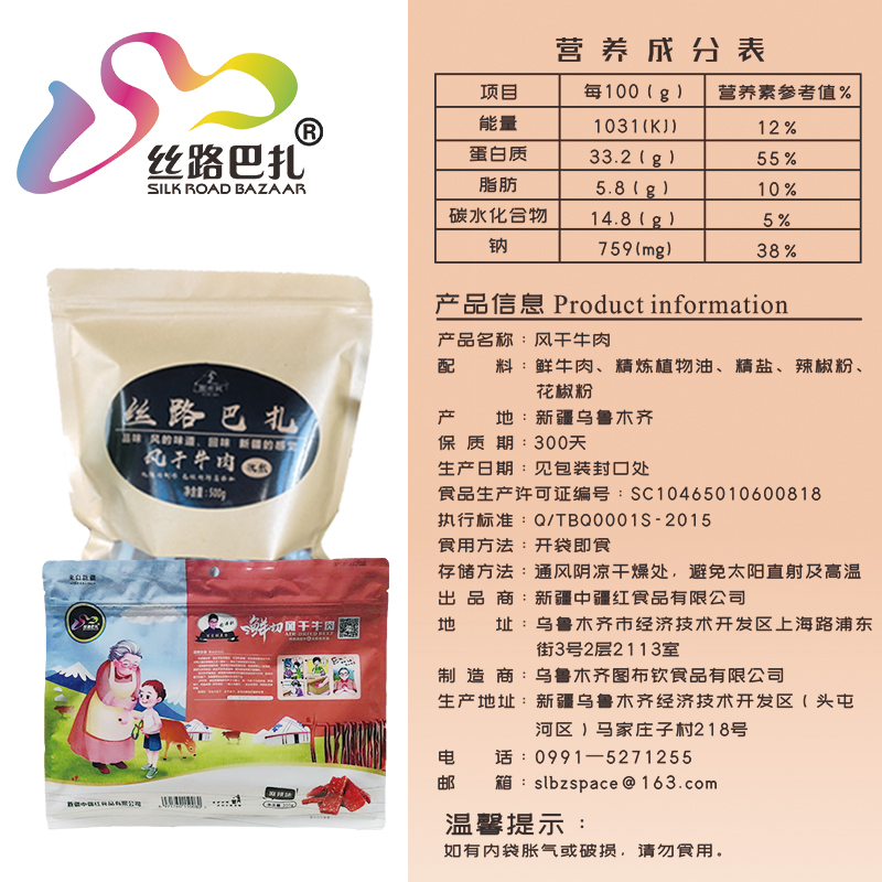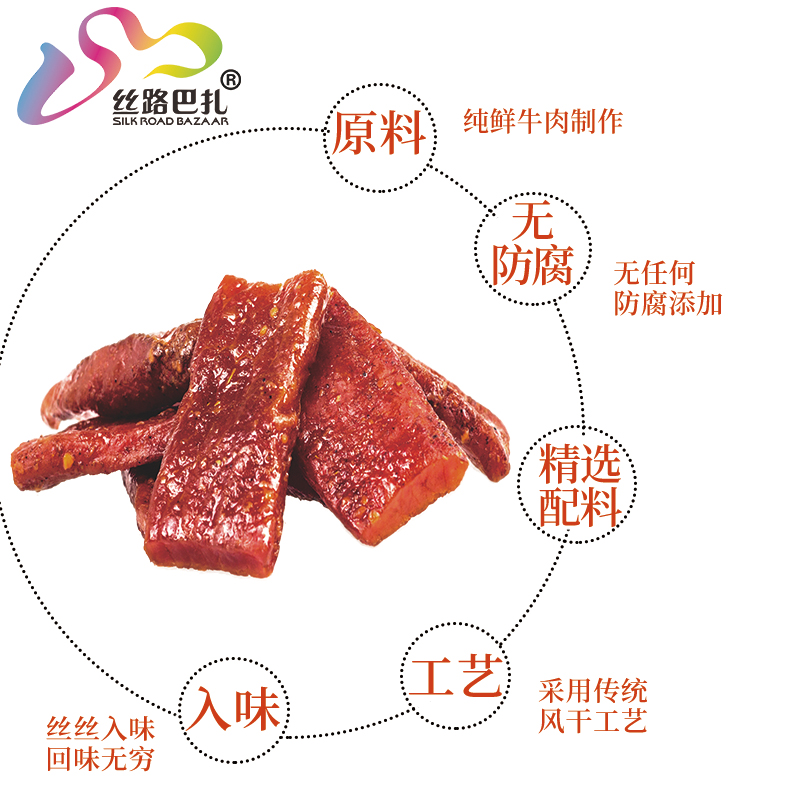 Xinjiang Silk Road Bazar air dried beef jerky 500g flavor beef Fresh beef preservative-free nationwide