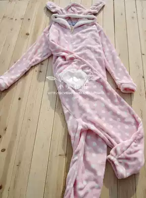 Export Japanese coral velvet one-piece rabbit ear one-piece pajamas super thick warm and dirty sleeping bag clearance is not returned