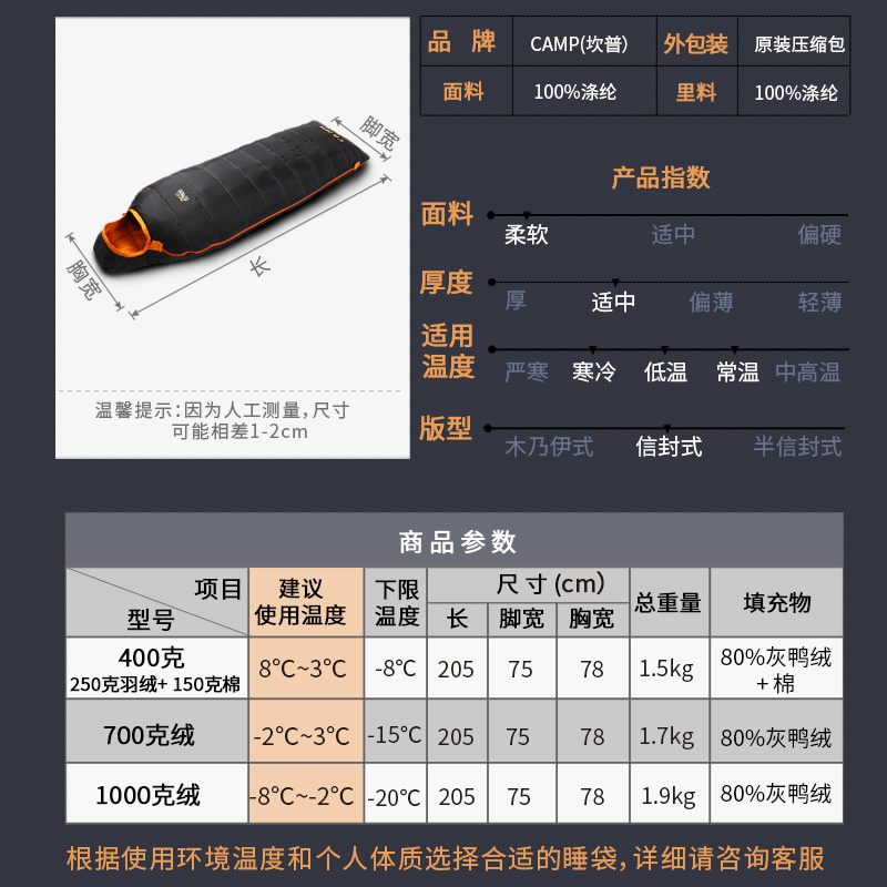 Sleeping bag classification: