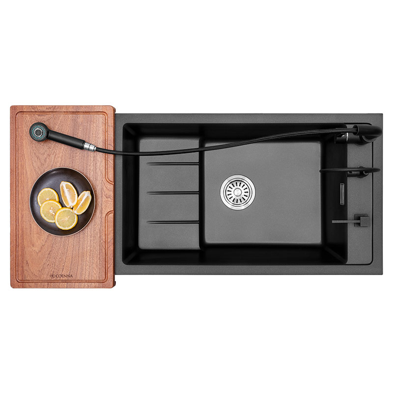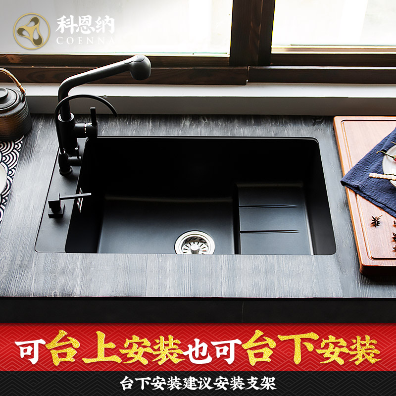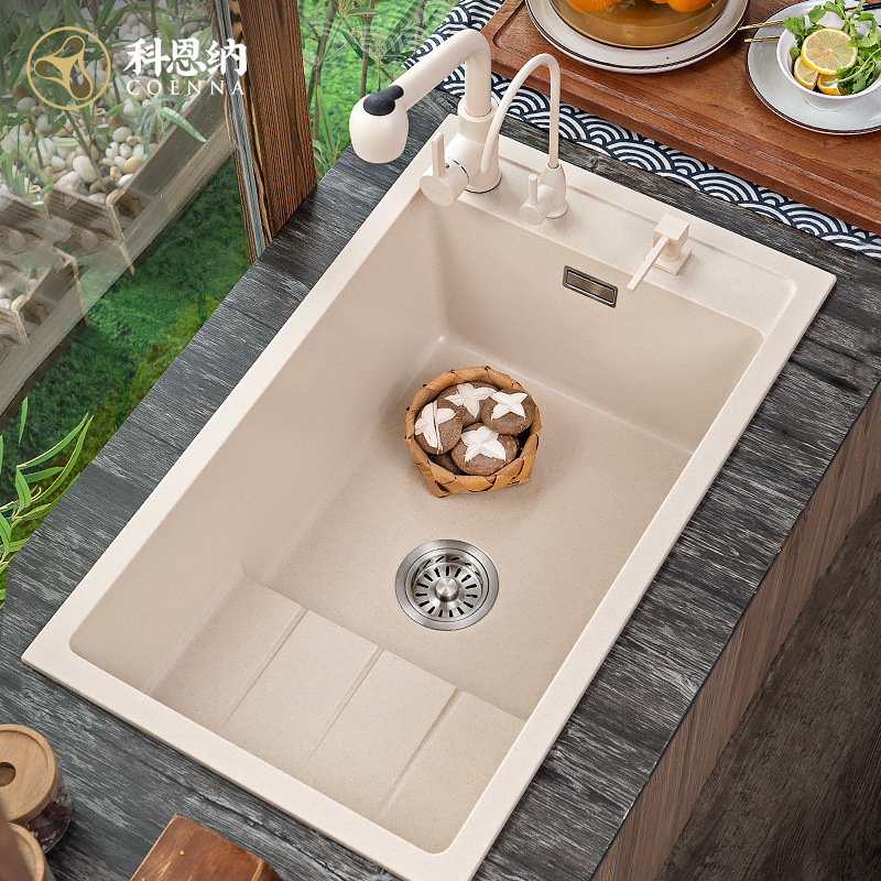 Cohenna quartz stone sink Large single sink Side loading kitchen sink Step leachate Domestic stage basin dishwashing pool
