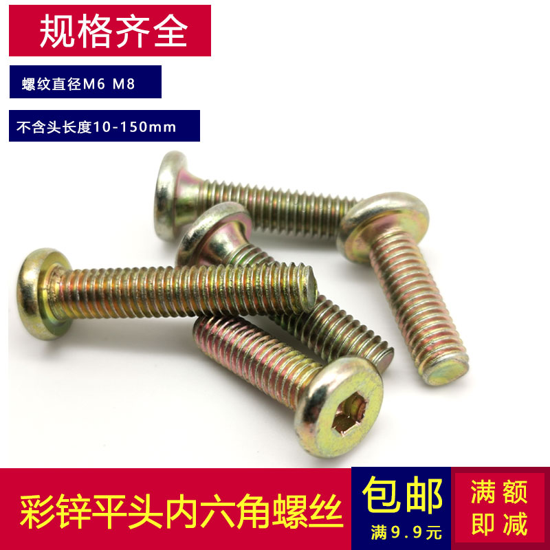 M6 color zinc chamfered flat head flat head flat inner hexagonal screw bolt furniture ultra-connected children's bed fixing screw