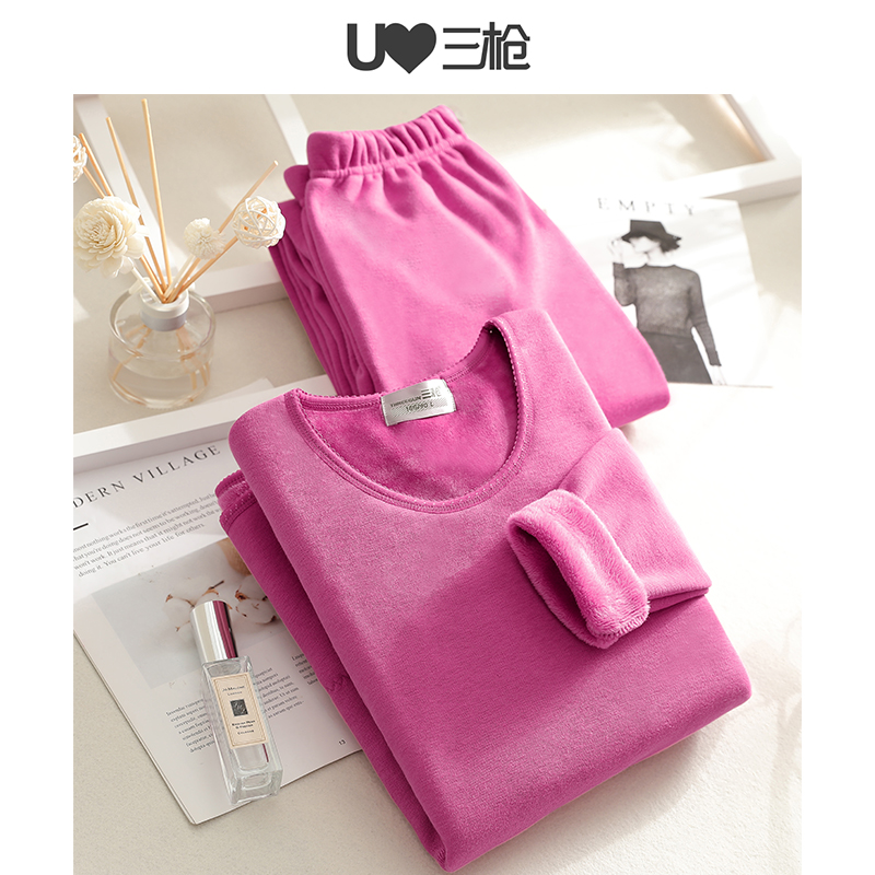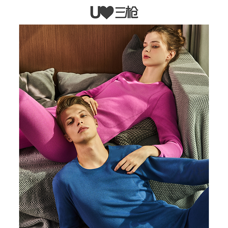 Three-shot heating clothes for men and women wool velvet Autumn and winter new knee pads and stomach pads plus velvet thickened base couple suit