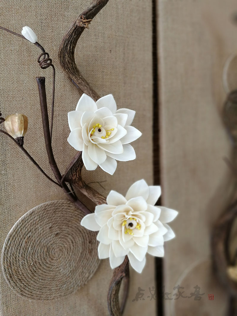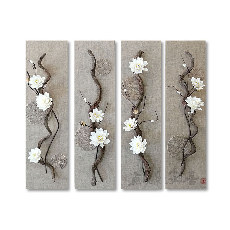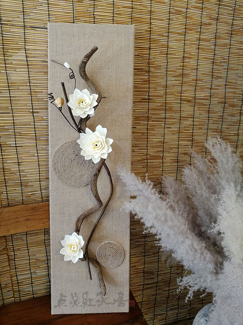 Sleeping Lotus Flower Decoration Painting Cotton Linen Café Closet Dry Flower Dry Branch Wall Decorated Windows New Chinese Wall Trim Grass Flowers