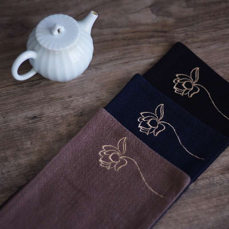 Chinese style zen cotton linen embroidered lotus tea towels water-absorbent thickened tea table cloth rag tea table cloth raising pot heat insulation mat-Taobao