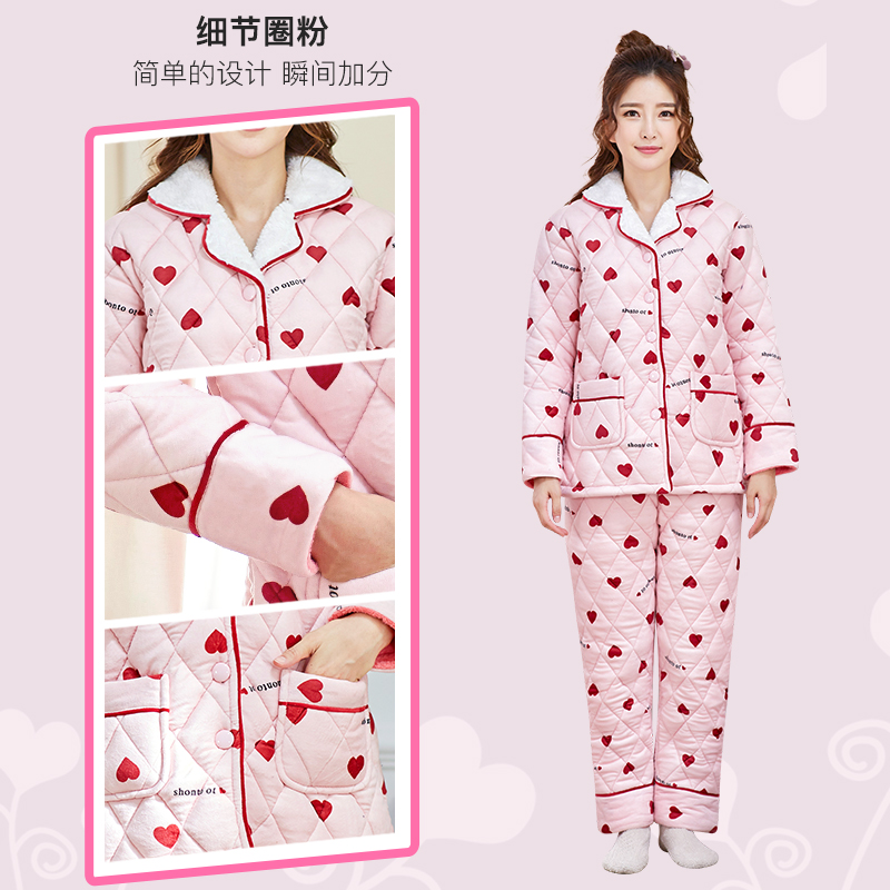 South Pole Laid Cotton Pyjamas Lady Winter Thicken Plus Suede Warm Cute Coral Suede Home Suit Autumn Winter Sky