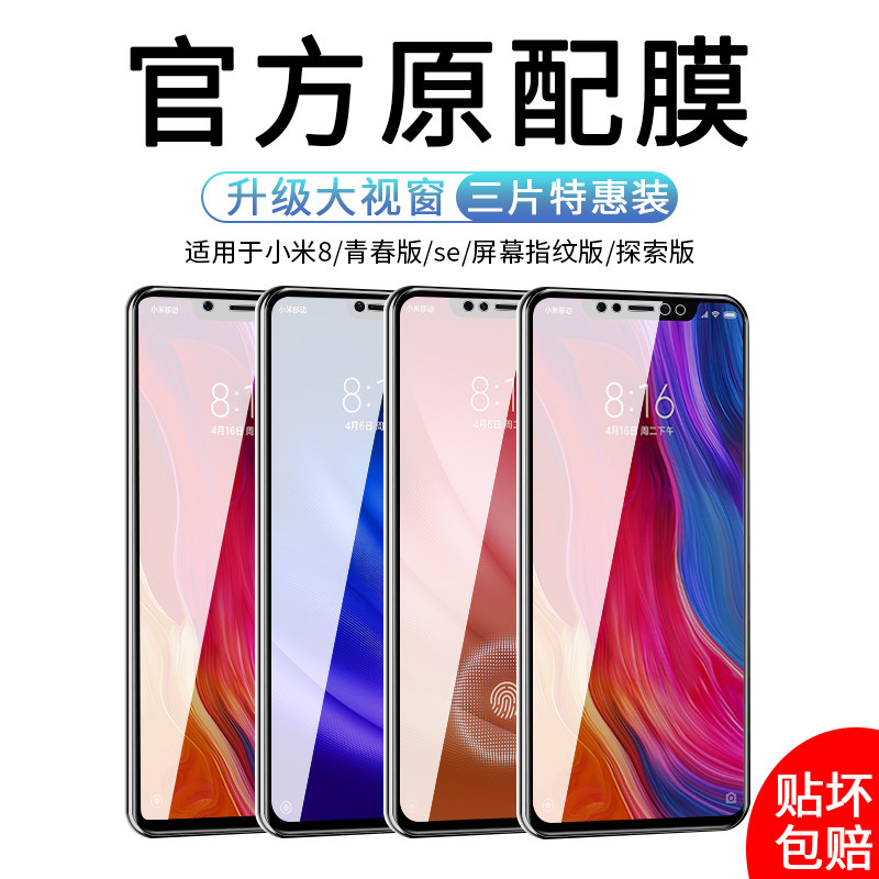 Millet 8 tempered film 8se full screen coverage millet 8 youth version screen fingerprint version mobile phone protective film exploration version glass full screen anti-blue light game special Mi 8 eye protection without white edge eight all-inclusive edges