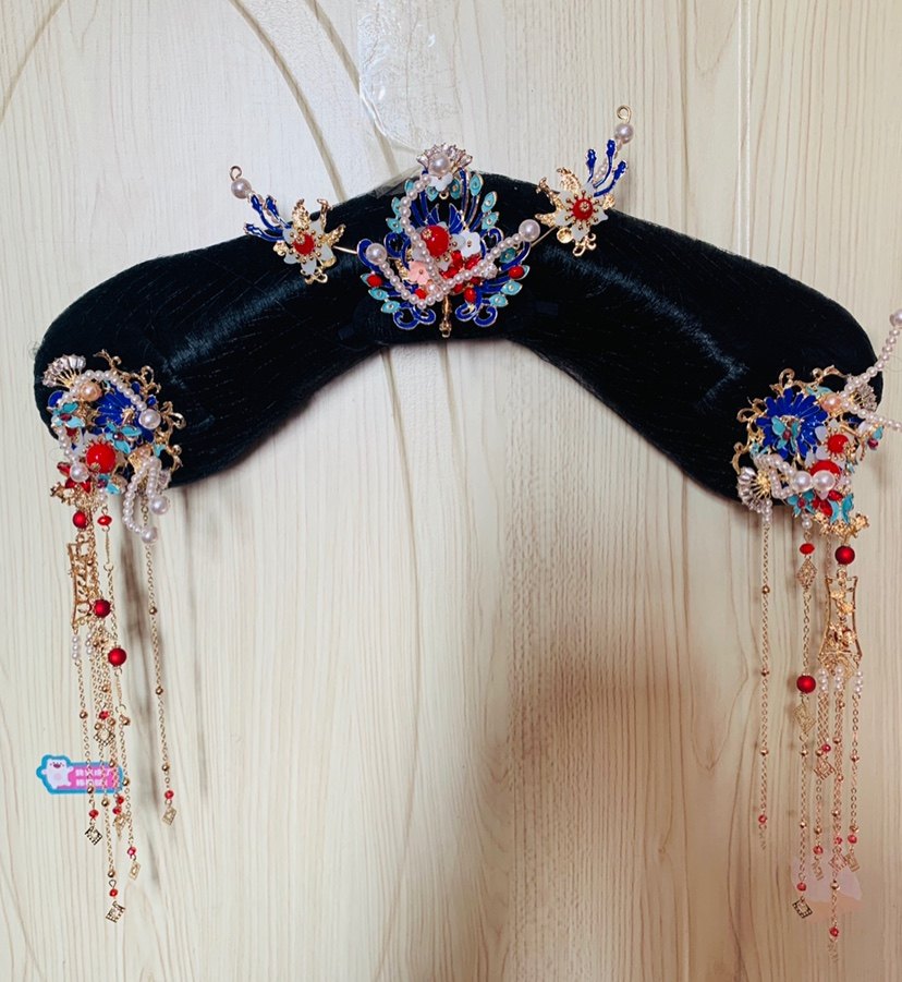 Children's ancient costume Yanxi strategy with headdress wig Wei Yan Luo flag Head Court Queen Fujin Gege bag