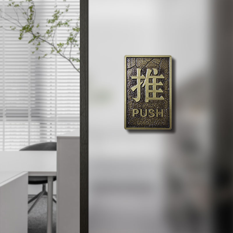 Imitation Copper Creative Push-and-pull Glass Door Sticker Hotel Push-and-pull Indication ID Card Acrylic Cue Card Personality Signs