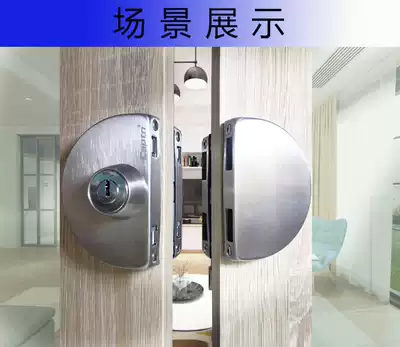 Framed glass door lock Aluminum alloy edging Stainless steel central glass door lock Two-piece brushed double-door glass door lock