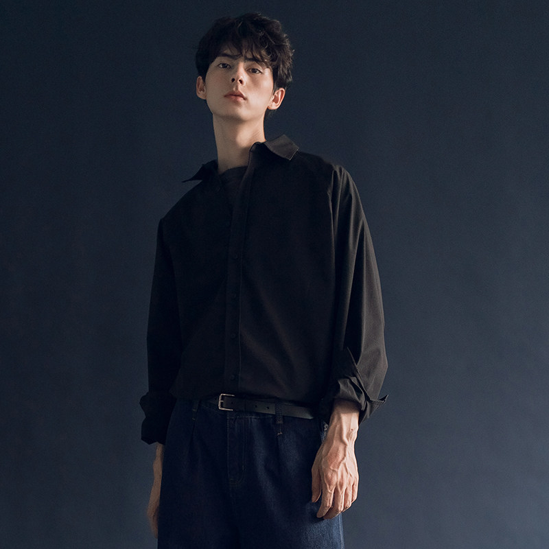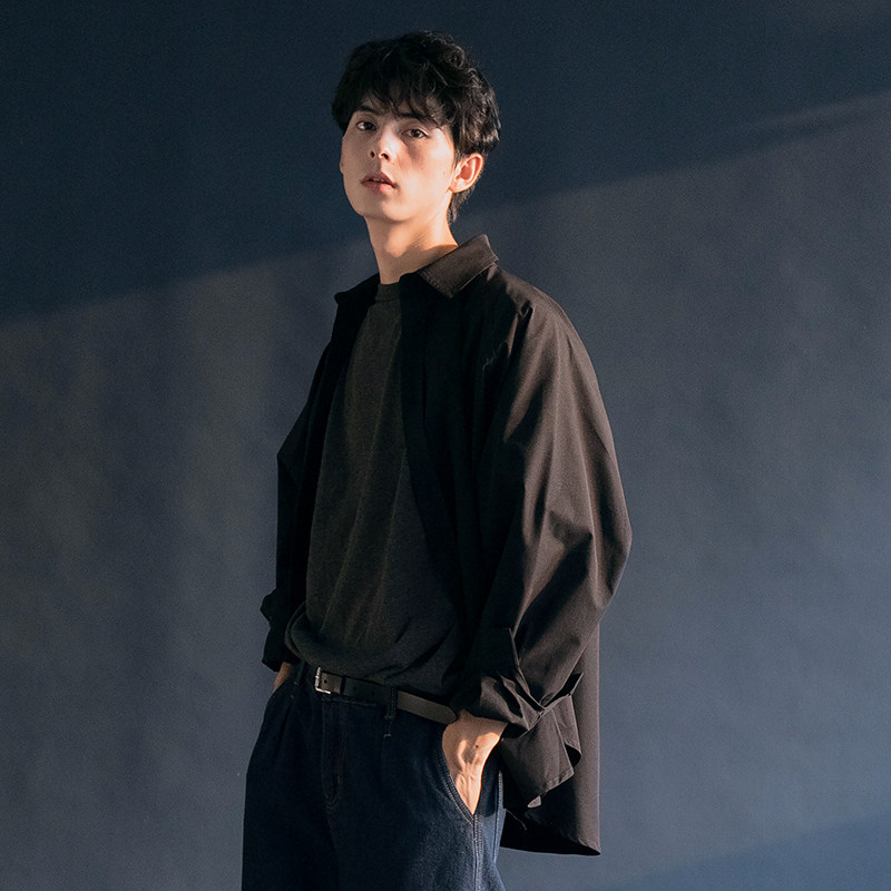 Gangfeng minimalist white shirt jacket men's shirt long sleeve Korean trend loose BF art wild casual black and white