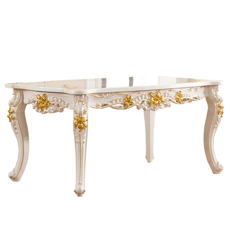 European solid wood natural marble rectangular dining table and chair combination large and small apartment dining table villa furniture