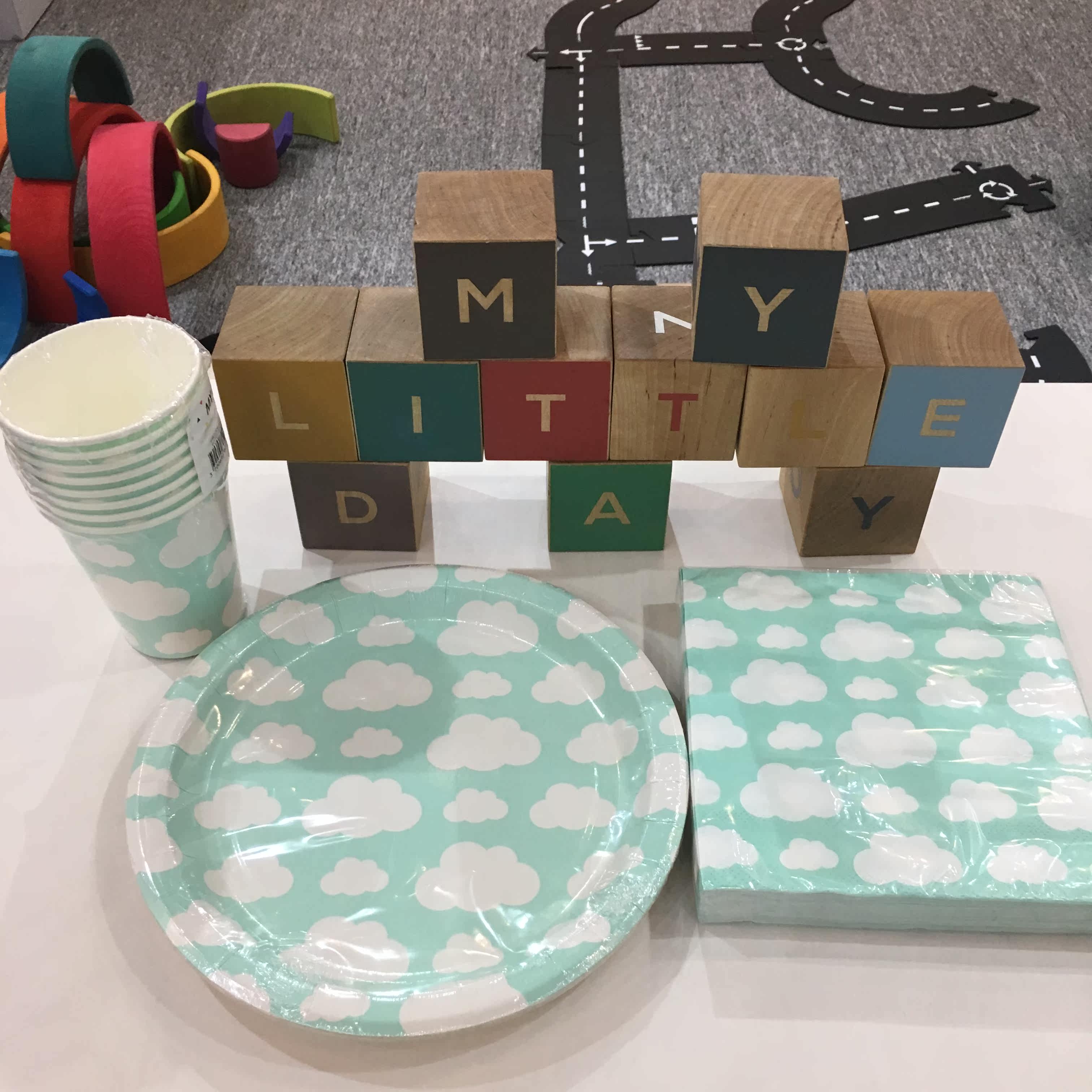 France my little day cloud theme children's birthday party decoration paper plate paper cup pull flower