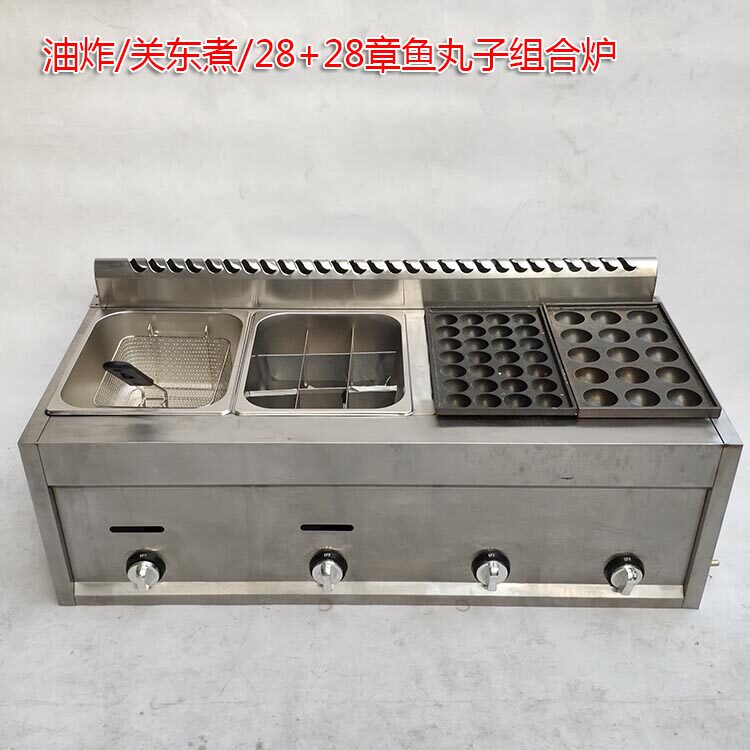 Octopus ball machine commercial double-plate grill pan gas takoyaki machine fryer Oden boiled noodles combination stove