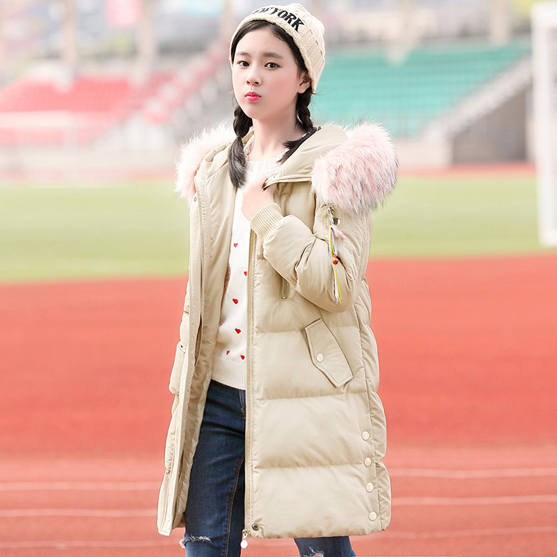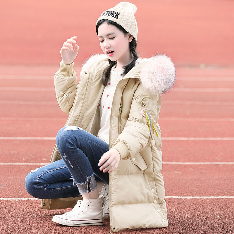 Snow poetry love girl winter clothes with hair collar long version thickened cotton coat 2018 new Korean version of junior high school students cotton clothes quilted jacket