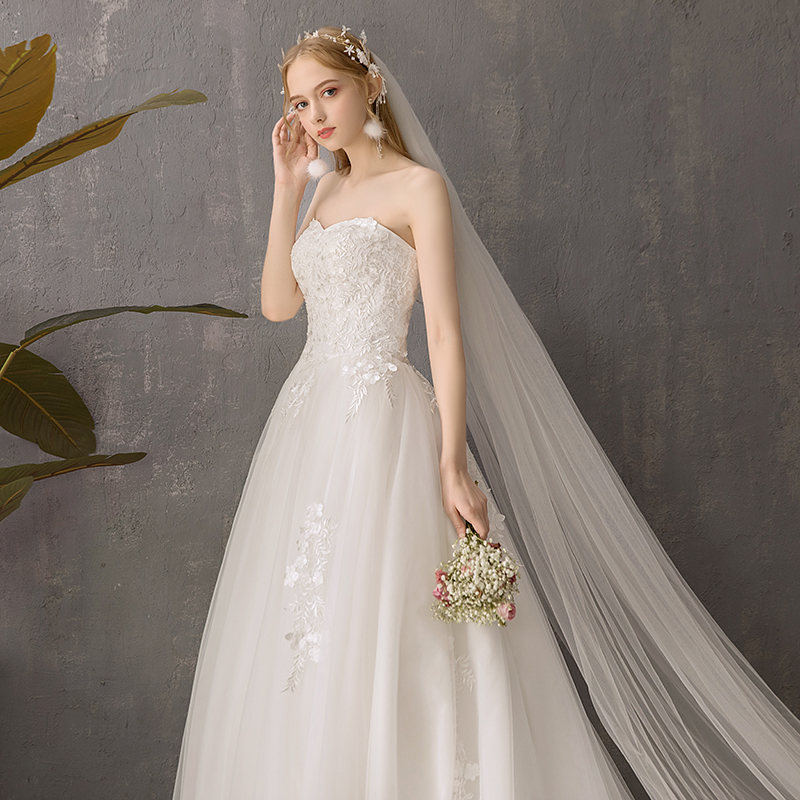 Bandeau wedding dress 2020 new French bridal woman simple forest department 2021 super fairy quality starry sky tail light