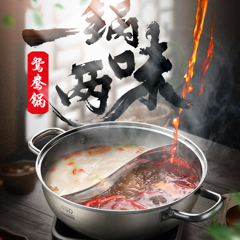 Love Shida Mandarin Duck Pan Hot Pot pot Home induction stove Special pot hot pot Electric hot pot thickened 304 stainless steel stockpot
