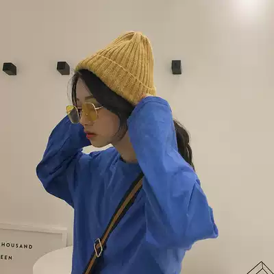 Hat female autumn and winter Korean version of ins yellow knitted wool hat cute rolled-up knitted hat men and women tide warm pullover