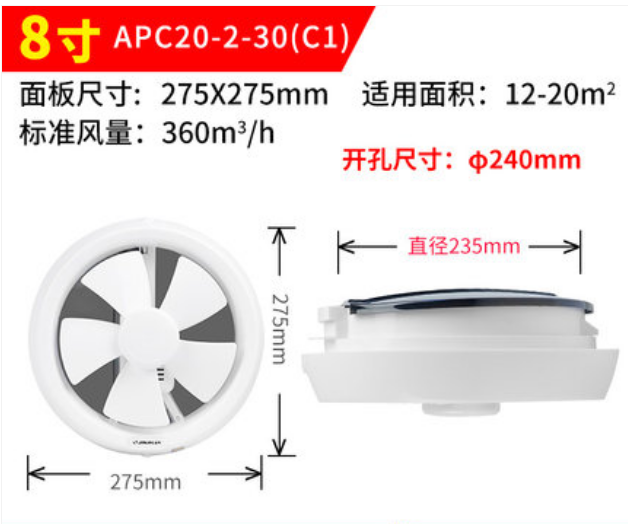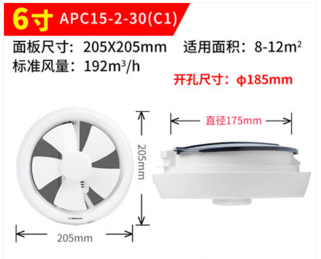 6-inch 8-inch kitchen exhaust fan Toilet Exhaust Fan Glass Wall Windows Pull Rope Silent Round Ventilator-Taobao