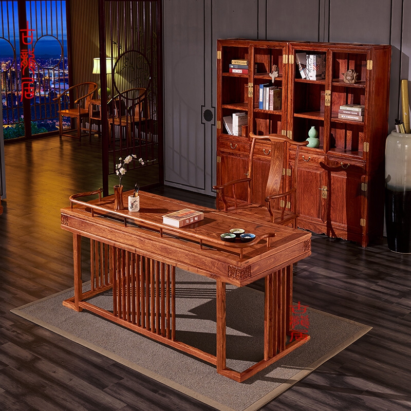 Ancient Longhu Red Wood Furniture New Chinese Desk Flowers Pear Wood Solid Wood Computer Desk Brief Learning Small Book Table And Chairs Combination