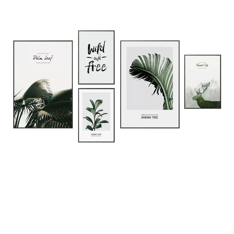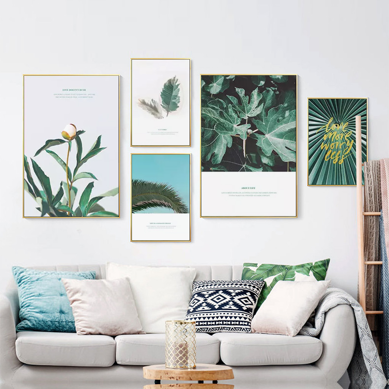 Nordic Living Room Decoration Painting Sofa Background Wall Creative Combo Hung Painting Little Clear New Green Plant Five United Dining Hall Mural Painting