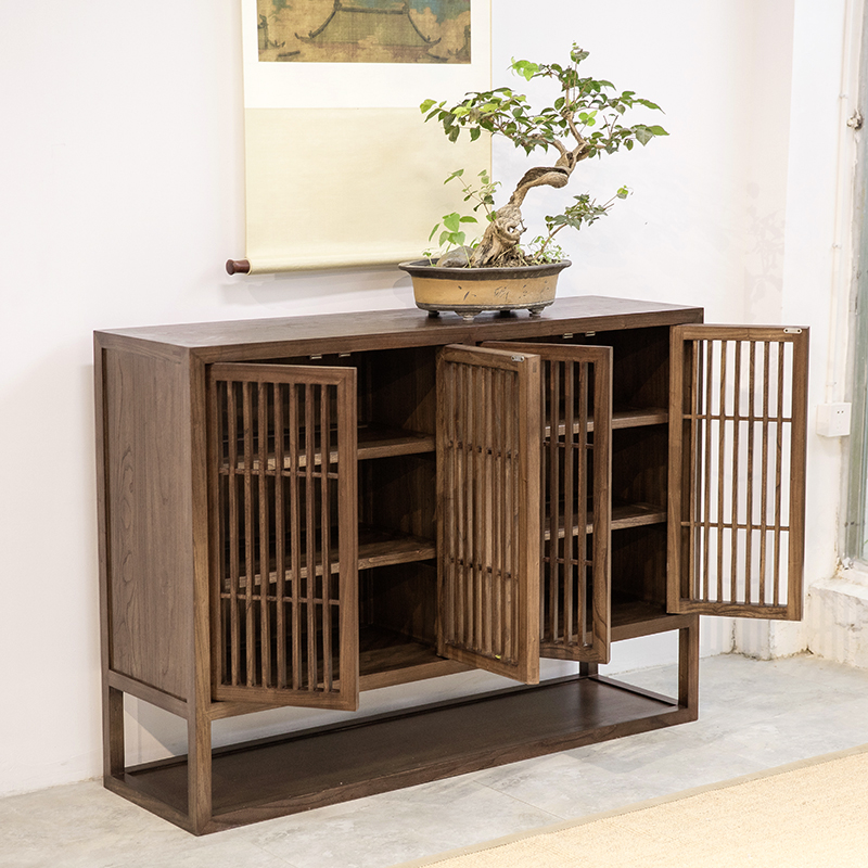 Wooden furniture new Chinese old elm sideboard North American black walnut four-door cabinet solid wood sideboard Zen furniture