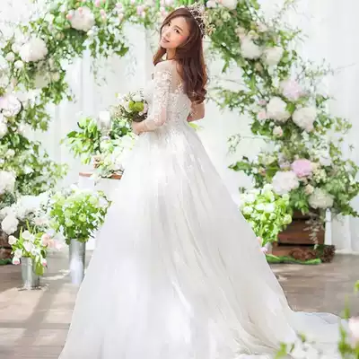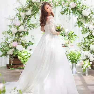 French light main wedding dress starry sky 2021 new temperament bride trailing mori department simple and generous little man out of the yarn