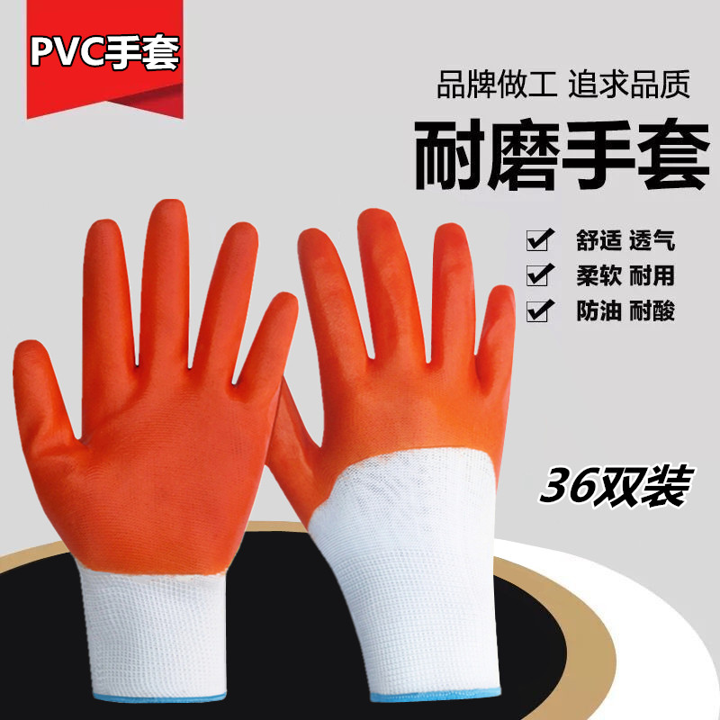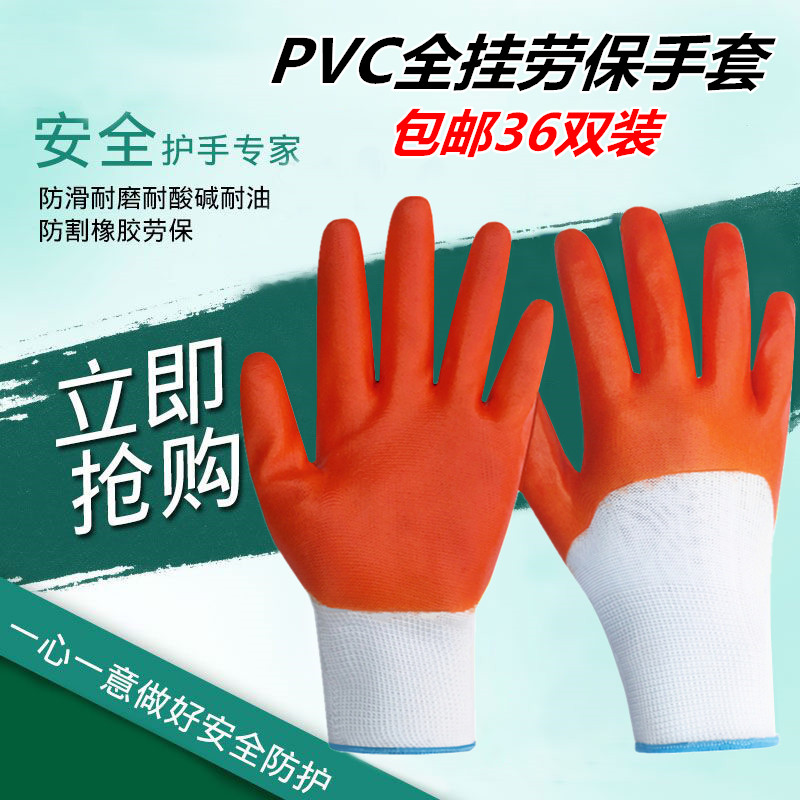 Labor Protection Gloves Soaked rubber abrasion-proof PVC full-hanging non-slip waterproof and oil-proof mechanical labor Thickened Rubber rubber Protection
