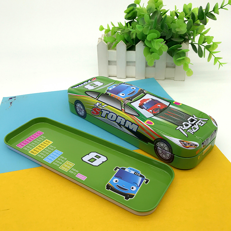 Primary school students car shape stationery box iron double-layer pen box men and women children pen box children's iron stationery box