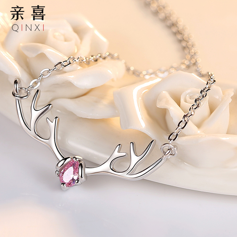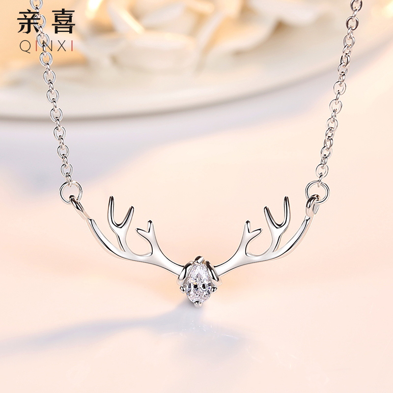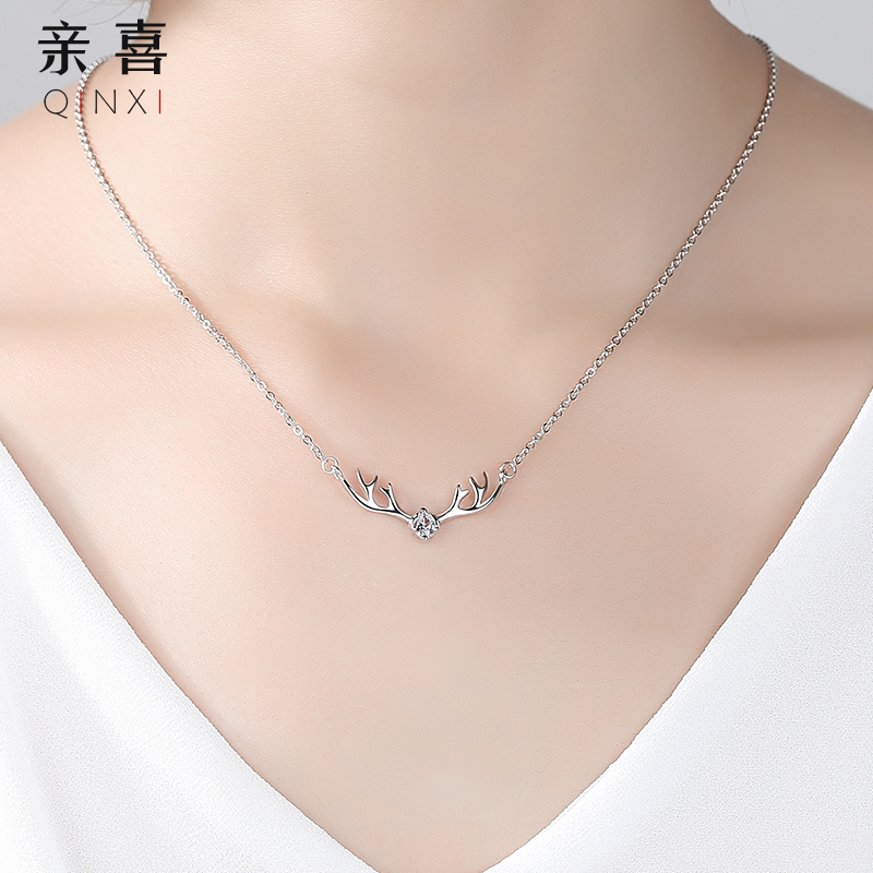 A deer have you necklace female pure silver elk lock bone chain Korean version of the tide pendant brief online red light and luxurious necklace small crowdsourced